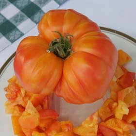 Verdaderamente un tomate maravilloso, de 1 libra, suave, amarillo y rojo, con deliciosos sabores dulces. Ganador del premio Tomato Tasting Award de tomatefest.com