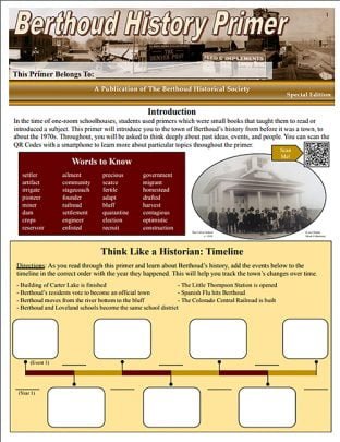 これまで、バートハウドの生徒はコロラド州の基準に従い、地元の歴史単位の一環として学校と一緒に博物館を訪れていました。最近のパンデミックの間、校外学習は不可能でしたが、そこで入門書、つまり教育用小冊子が作成されました。今日でも、これはバートハウドの歴史に関する有用なリソースであり、生徒はこれを使って博物館の遺物やテーマの一部に触れることができます。