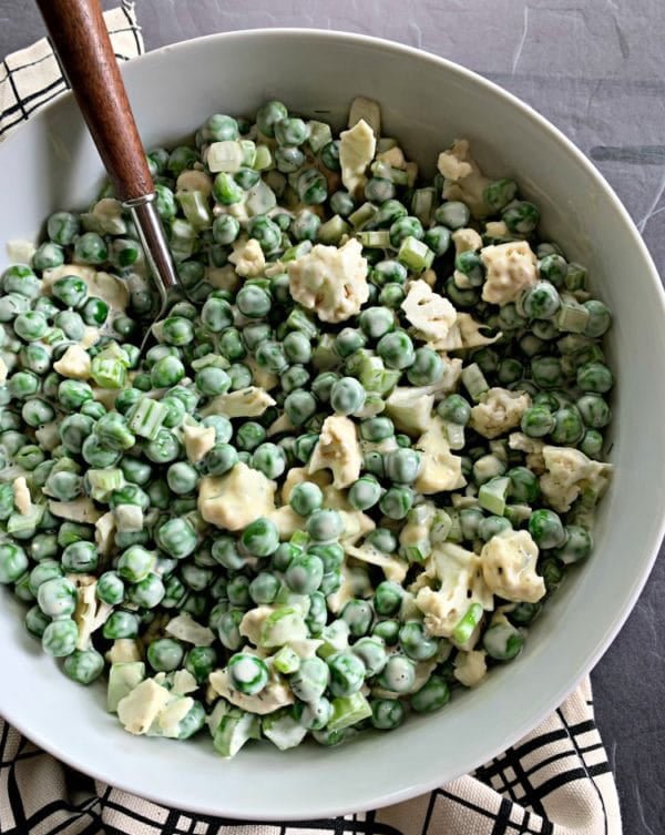 Get out your grandmother’s cookbook. No family picnic is complete without a colorful pea and cauliflower salad! This favorite from the Midwest mixes tender-crisp cauliflower with peas and red onion tossed with a slightly sweetened mayonnaise dressing with a sprinkle of cheddar cheese on top. (Gluten Free)
