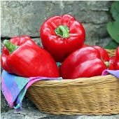 Large, 3 to 4 lobbed blocky 6 oz. bells are 5 to 6” long and 5” wide. Fruits mature to a deep, dark red, have thick walls and are very sweet.